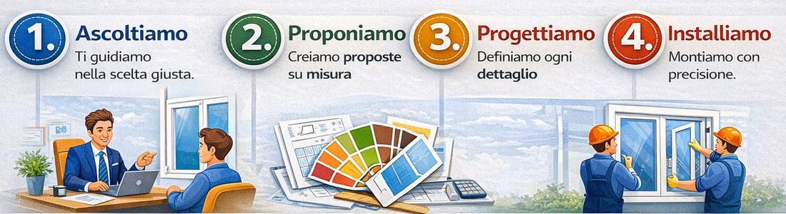 In sede, il personale illustra nel dettaglio le caratteristiche degli infissi e guida nella selezione di soluzioni coerenti sia dal punto di vista tecnico che estetico. La disponibilità del team permette di definire priorità, vincoli strutturali e obiettivi del lavoro, così da ottenere un risultato finale armonico, funzionale e duraturo nel tempo.