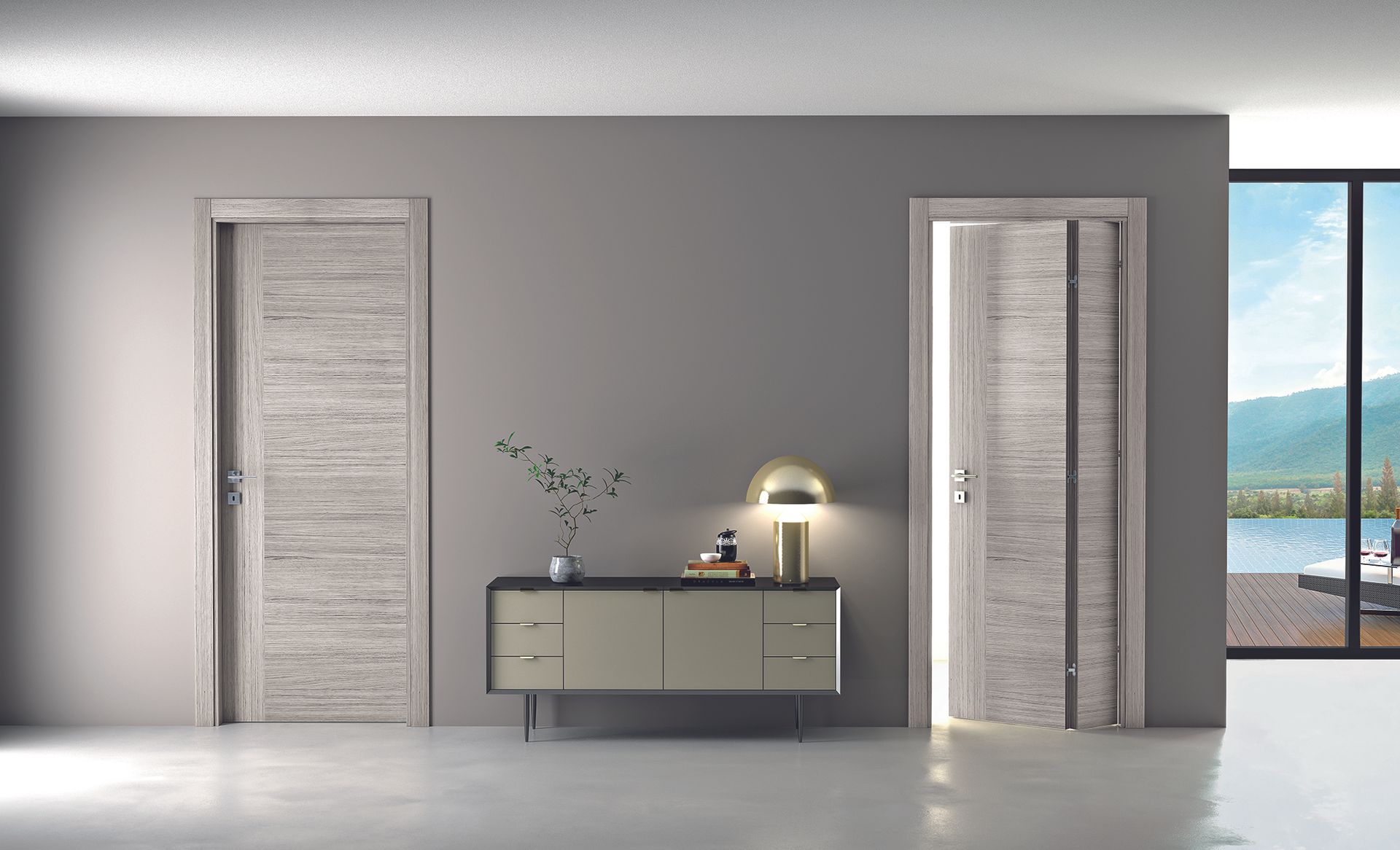 Le Porte Interne incidono in modo diretto sull’identità di un ambiente. Per questo il catalogo include linee differenti, pensate per stili d’arredo diversi. Le porte classiche valorizzano essenze e finiture tradizionali, spesso abbinate a cornici e dettagli più marcati. Le porte moderne puntano su superfici pulite, geometrie essenziali e, in alcuni casi, sull’abbinamento tra legno, alluminio e vetro.